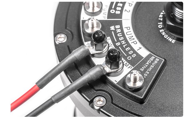 Ström anslutningarna till pumparna hanteras med specialdesignade bultar för hög ström. Nödvändiga ringterminaler och monterings detaljer ingår i varje fuel surge tank.