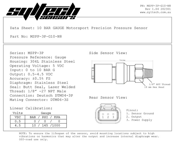 • 0.5 volt = 0 PSI (0 bar) (Ambient pressure)