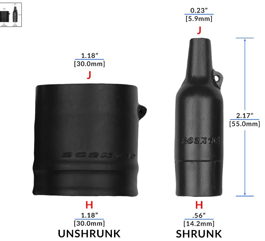 30/30mm Innan krympning - 14,2/5,9mm efter krympning